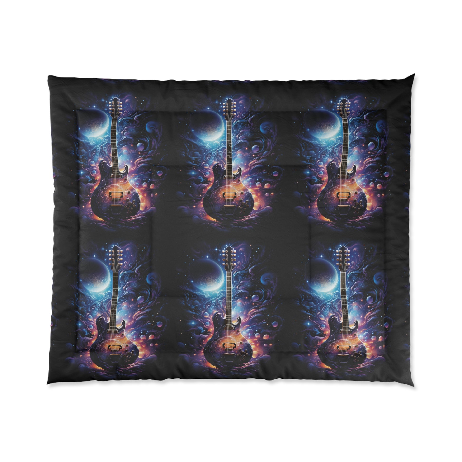 Guitar Galaxy Comforter, Cozy Bedding, Music Lover Gift, Space Decor, Celestial Bedroom, Unique Quilt
